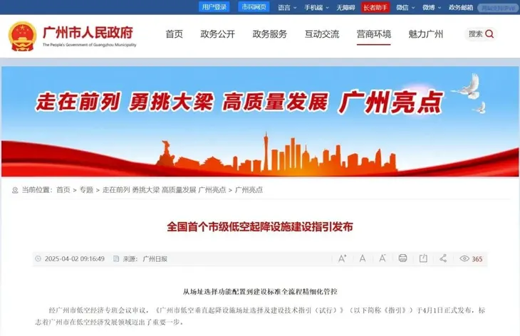 4月1日,广州空港委印发《广州市低空垂直起降设施场址选择及建设技术指引(试行)》(以下简称《指引》),指引共分10章,旨在规范低空垂直起降设施场址选择、项目立项、工程设计、建设实施。