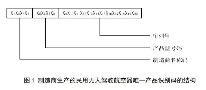 《识别码》还规定:制造商生产的民用无人驾驶航空器的唯一产品识别码,由制造商名称码、产品型号码和序列号等三部分组成,长度共20个字符。