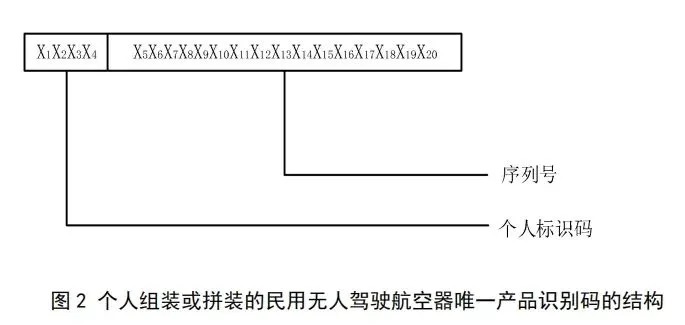 个人组装或拼装的民用无人驾驶航空器的唯一产品识别码,由个人标识码和序列号等两部分组成,长度共20个字符。