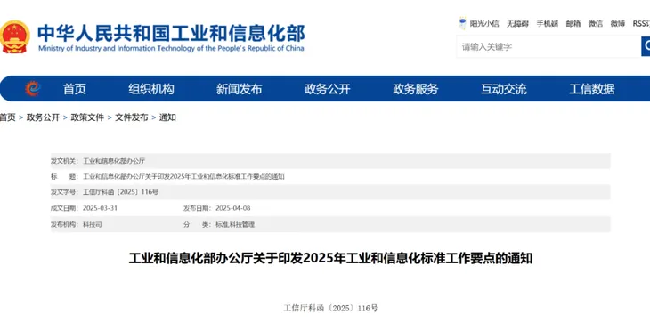 4月8日,工信部印发《2025年工业和信息化标准工作要点的通知》(以下简称《通知》)。