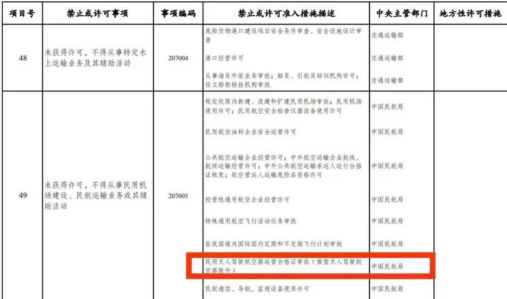 2025负面清单出炉!民用无人驾驶航空器运营合格证核发首次被纳入