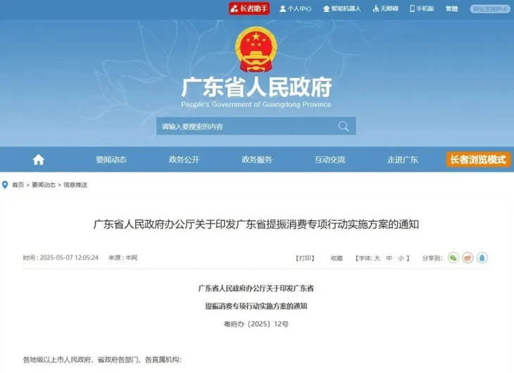 5月7日,广东省印发《广东省提振消费专项行动实施方案》(简称《方案》),推出8个方面、31条举措,部署实施居民就业增收促进行动、居民保障支持行动、服务消费提质惠民行动、大宗消费更新升级行动等七大行动,全方位扩大消费需求,大力提振消费。