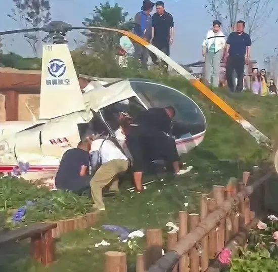 5月2日下午5点,苏州太湖一景区发生直升机迫降事故,造成机上和地面人员遇险(图源:新浪财经)