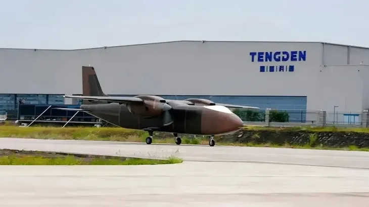 今年6月,腾盾科创全资子公司芜湖腾盾航空科技有限公司位于安徽省芜湖市湾沚区的新总装线正式投产“双尾蝎 D (Twin-Tailed Scorpion D)”大型四发运输无人机,这也是该型无人机在国家层面首次亮相。腾盾科创将其描述为适用于多种用途的大型低成本运输无人机。“双尾蝎 D”翼展20米,机身长10.5米,高度3.1米,最大起飞重量4.35 吨,最大载重1.8吨,满载状态下最大航程超过600千米。该机配备四台中科航发研制的C145HT-VI涡轮增压活塞发动机,这种采用电子燃油喷射技术的水平对置四缸四冲程发动机,单台额定功率105千瓦,可在-55℃~+70℃环境中运行。D18采用模块化结构设计,货舱容积5立方米,并有系统冗余配置,使其成为全球第一款采用模块化运输技术的大型民用无人机。腾盾科创还为其配备了该公司研制的自主飞行软件,一名操作员可以同时监控最多十架无人机,具备一键起飞功能。值得注意的是,该机配备四台同向旋转的发动机,若同侧两台发动机同时失效将面临非对称推力风险,但据称腾盾科创的飞控软件已针对此类情况制定了应急程序。