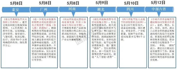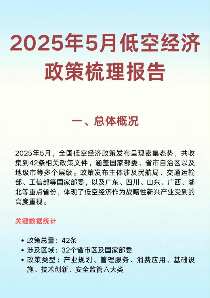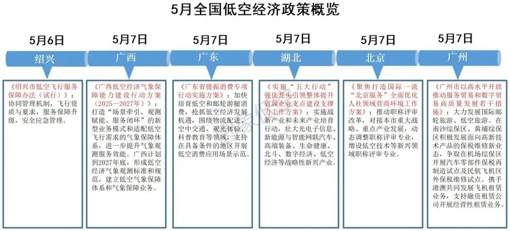 5月低空:全国超32个省市区及国家部委共发布42条相关政策