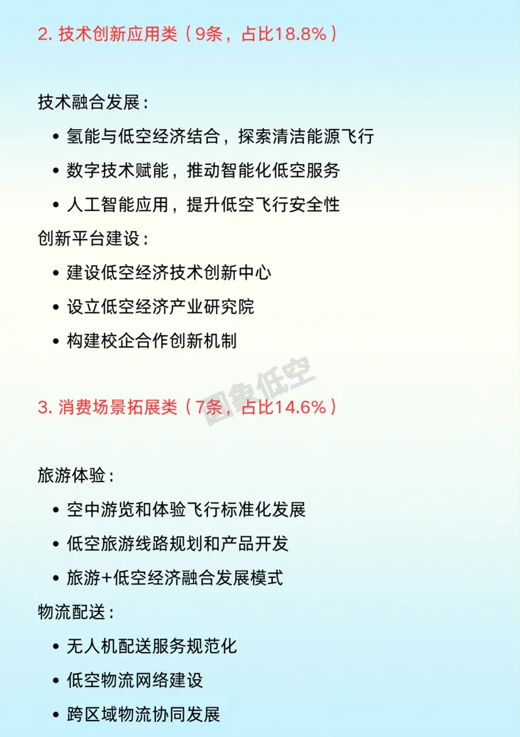 这些政策涵盖了低空经济的多个关键层面,包括人才培养、基础设施建设、应用场景拓展、安全监管以及产业协同发展等,形成了全方位、多层次的政策支持体系。人才培养政策为低空产业的长远发展提供了源源不断的智力支持;基础设施建设政策则为低空领域的各类应用搭建了坚实的硬件平台;应用场景拓展政策不断挖掘低空经济的潜力,开拓新的市场空间;安全监管政策保障了低空经济在安全、有序的环境下运行;产业协同发展政策促进了低空经济与其他产业的深度融合,实现互利共赢。
