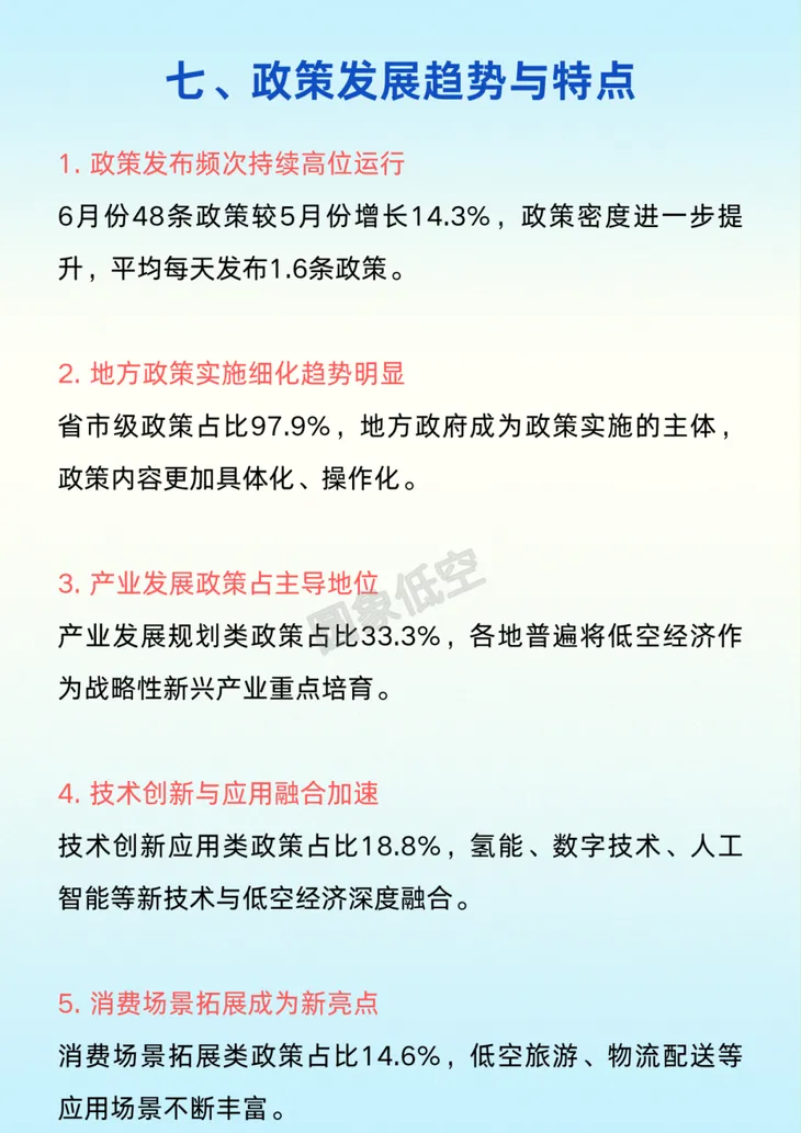 从内蒙古致力于打造低空经济领域人才培养高地,到广东、深圳等地在海洋、跨境等特殊场景下探索低空经济的新应用;从苏州、绍兴等地对低空起降设施的精心布局规划,到众多地区围绕低空旅游、低空物流等热门领域持续发力,6 月份的低空政策可谓精彩纷呈、亮点频出。