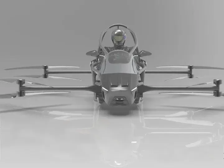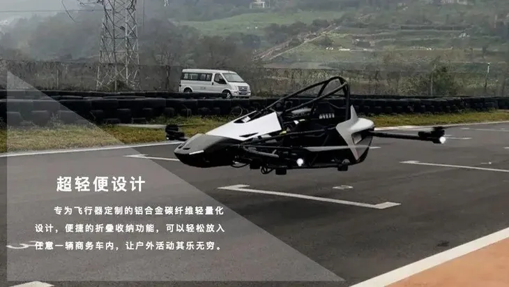 AnTG One是一款载人飞行器,在产品设计上,突破传统飞行器大载重、长续航路线,聚焦5-50米超低空娱乐场景。采用可折叠设计便于运输存储,展开后占地仅0.8平方米。主体框架使用航空级6061铝合金,外壳采用T800级碳纤维复合材料,整机重量控制在75公斤以内,最大载重达200公斤。
