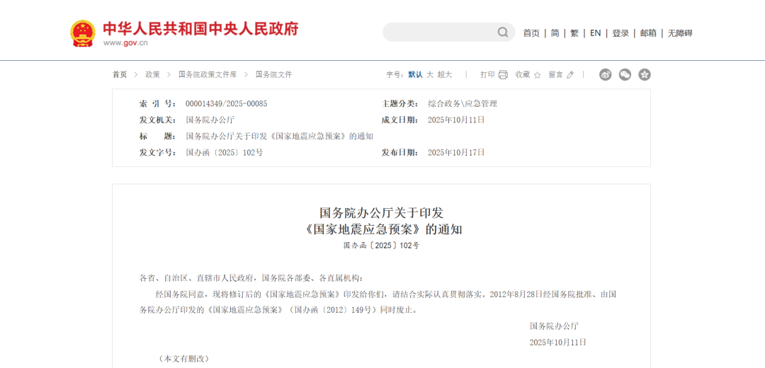 近日,国务院办公厅正式印发修订后的《国家地震应急预案》(国办函〔2025〕102号),同步废止2012年版预案。此次修订进一步强化“统一指挥、分级负责、防救结合”原则,明确党委领导、政府主责的应急框架,尤其在极端灾害场景下的应急响应机制与基础设施保障方面作出重大升级,大型固定翼长航时无人机调派、应急救援空中投送通道开辟等内容成为亮点,为应对“断路、断网、断电”(以下简称“三断”)极端情况提供关键支撑。