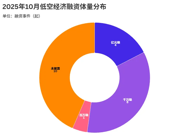 整体来看,2025年10月低空经济融资在体量维度上形成了“千万级支撑、亿元级引领、百万级补位”的结构,既反映出行业在不同发展阶段的资本适配性,也彰显了低空经济赛道从成长到成熟的梯度发展活力。
