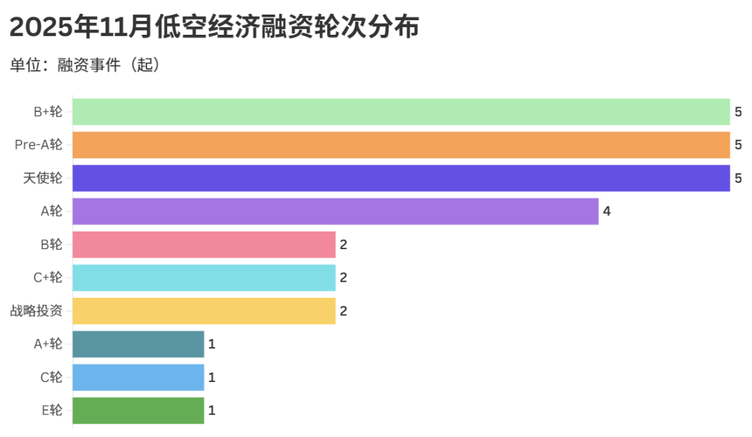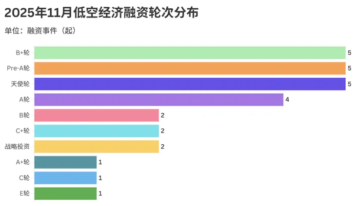 2025年11月低空经济领域融资轮次分布数据显示,早期融资仍是市场主力,同时成长型项目的资本关注度也在逐步提升。