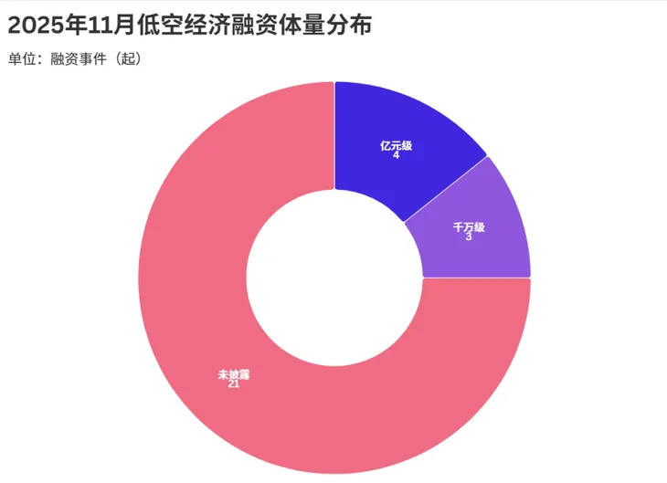 2025年11月低空经济融资体量分布数据显示,大额资本正加速向赛道核心项目倾斜,亿元级融资事件成为本月资本布局的关键抓手。