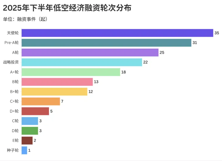 2025年下半年,国内低空经济领域的融资轮次分布呈现出鲜明的“两头分化、中间集中”特征,既反映了行业早期的蓬勃活力,也揭示了成熟项目的竞争格局。