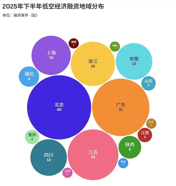 2025年下半年,国内低空经济融资的地域分布呈现出显著的头部聚集效应,同时也折射出政策引导与产业基础对资本流向的深刻影响。