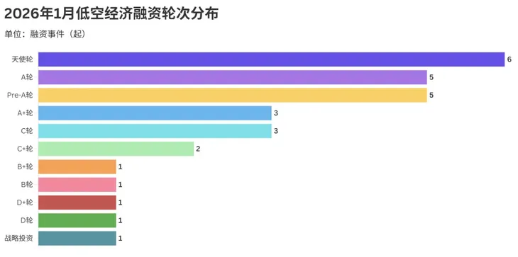 2026年1月,低空经济领域的融资市场呈现出鲜明的早期阶段主导、后期案例稀缺的特征,这一趋势清晰地反映在当月的融资轮次分布中。