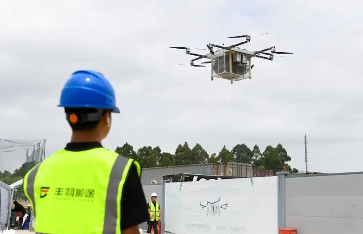 丰翼无人机在深圳宝安区运送货物(图源:投资界)