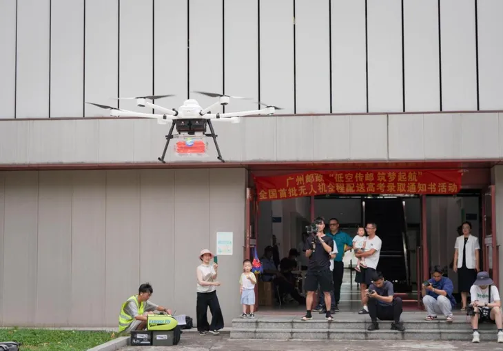 无人机在派送广东首批高考录取通知书(图源:南方网)